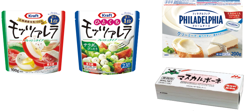 1999年に発売を開始し、2024年で25周年を迎えた、売上No.1(※)のモッツァレラチーズ。北海道産生乳を100%使用し、ふんわりとしたミルク感ともちもち食感が人気です。「ミルクのおいしさそのまま製法」でフレッシュなおいしさを実現しています。そのまま食べると「もちもち」、加熱すると「劇的モチとろ~!」な食感を楽しめます。クセのない味わいなので、お肉・野菜・果物など幅広い食材とアレンジをお楽しみいただけます。