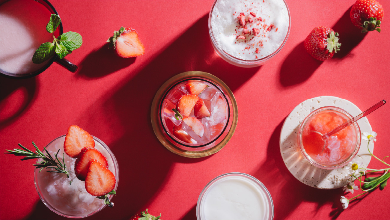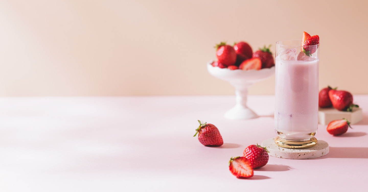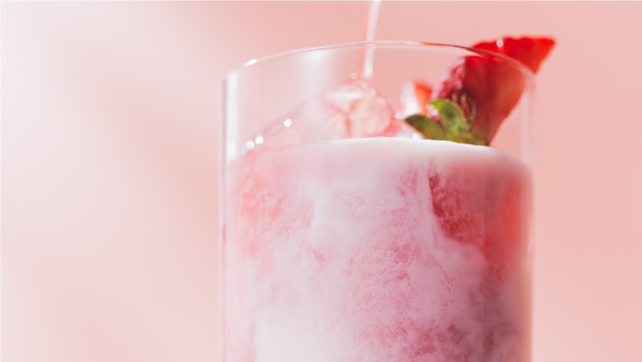 「フルーティス™ あまおう」をミルクで割って混ぜれば「あまおうさっぱりミルク」のできあがり。甘くてやさしいだけじゃない、新感覚のリフレッシュドリンク!
